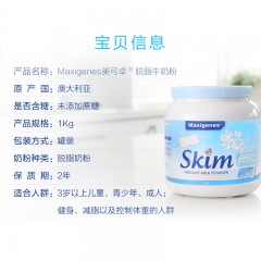 Maxigenes美可卓蓝妹子脱脂成人奶粉1kg罐0蔗糖高钙儿童学生中老年