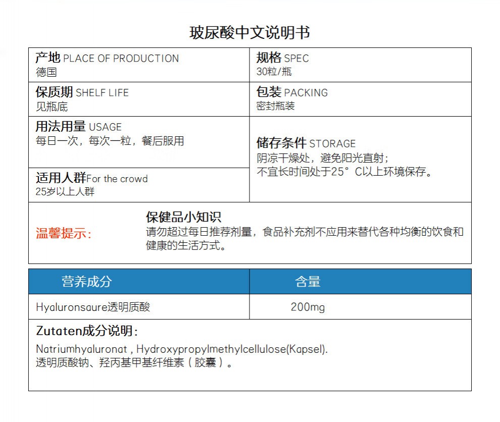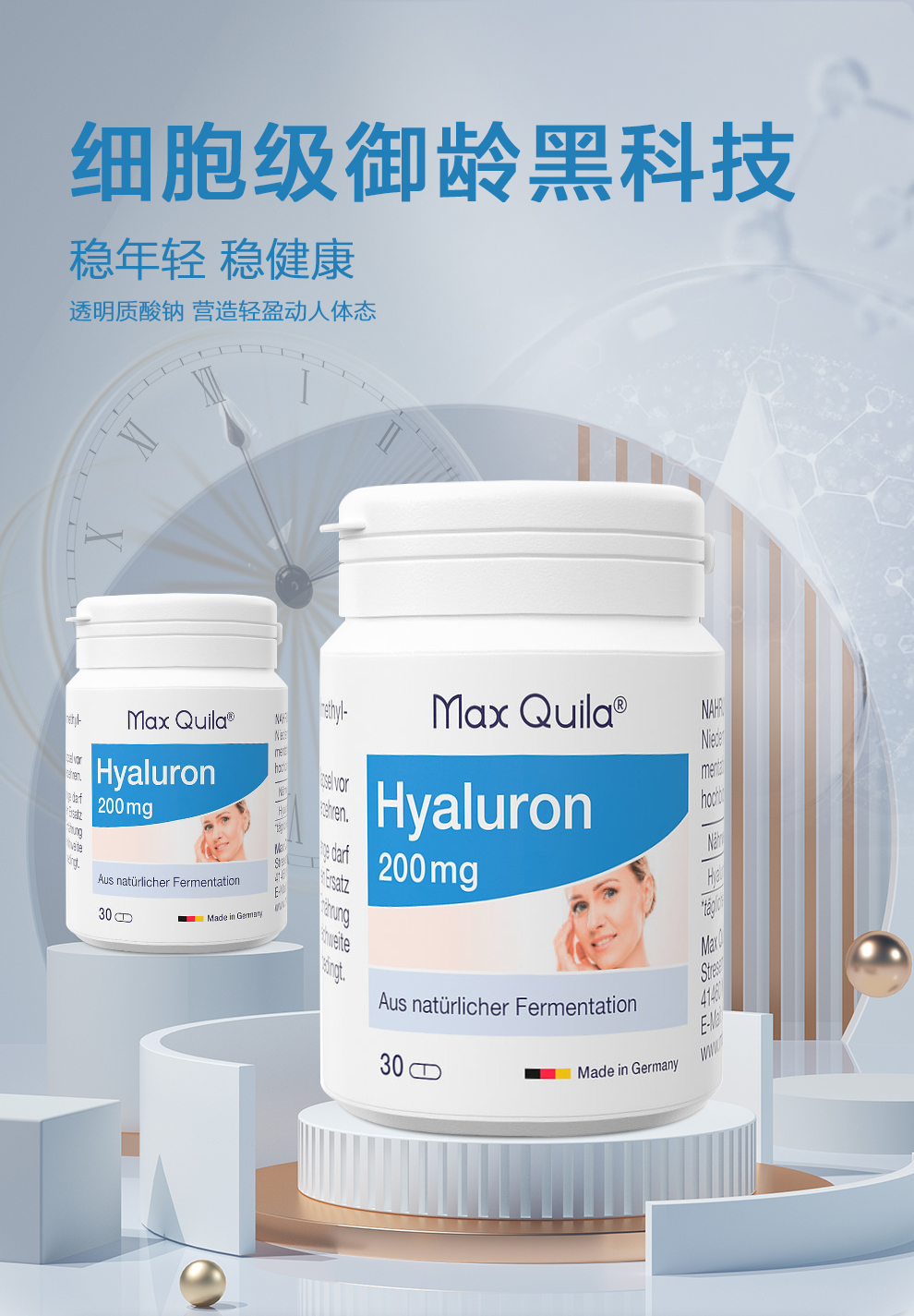 商品名称:Max Quila德国小分子玻尿酸透明质酸钠水解胶原蛋白肽美白丸美容保湿补水 口服玻尿酸胶囊