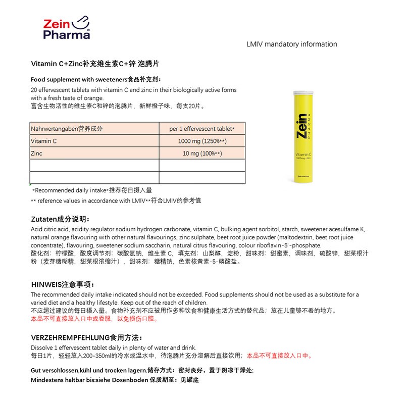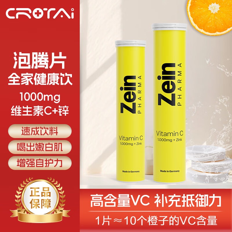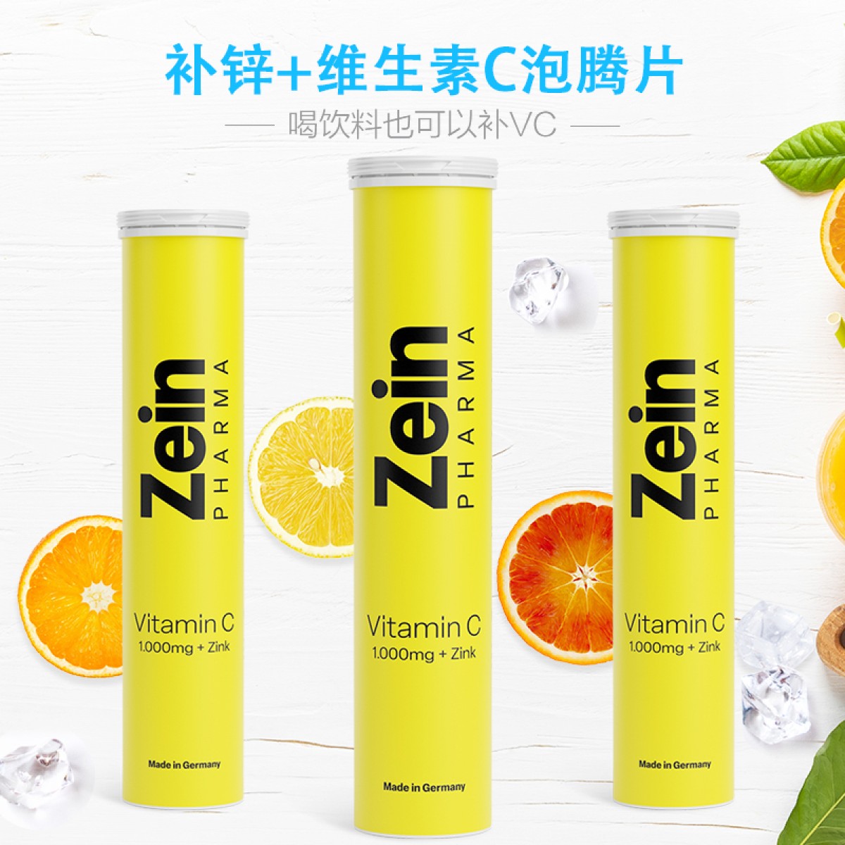 德国进口维生素C补锌彩恩VC泡腾片zeinpharma增强免疫力高含量1000mg甜橙味