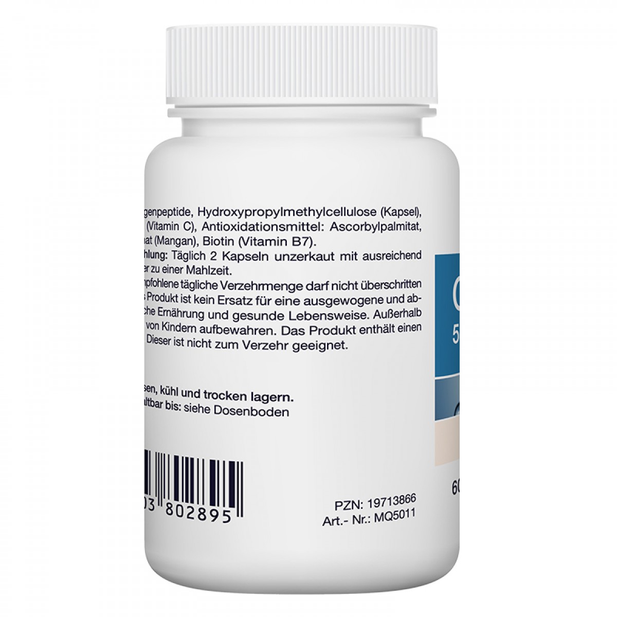 ❗ 成分说明:每 2 粒胶囊:胶原蛋白肽 1000 mg,维生素 C 80 mg; 锰 2 mg; 生物素 50 μg。