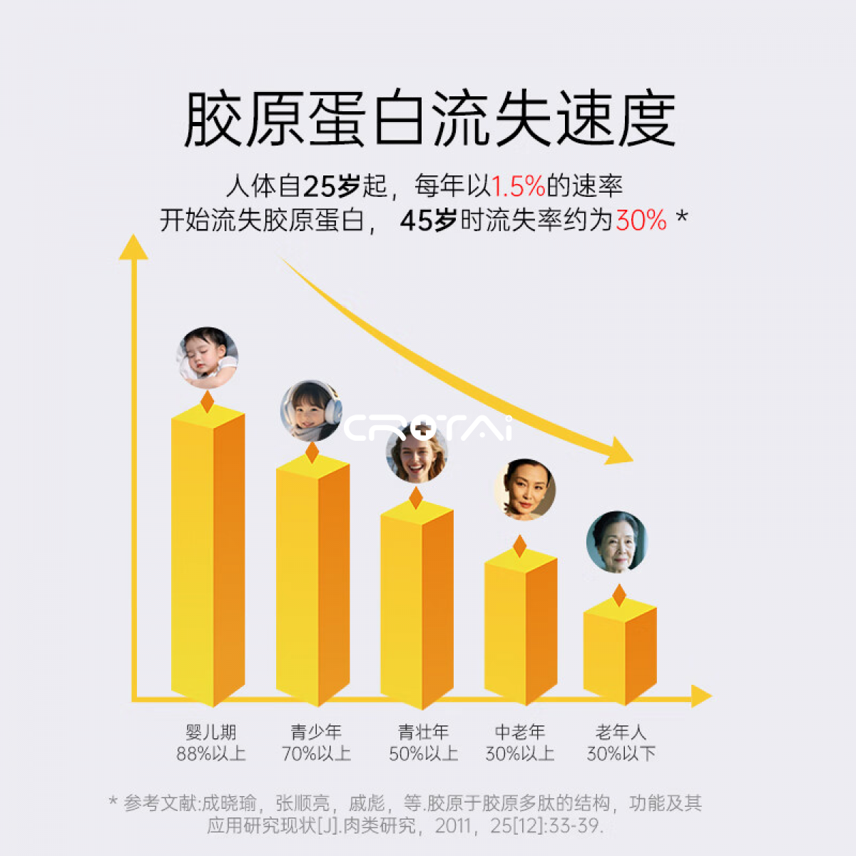 含独特生物活性肽,型与山型胶原蛋白科学配比。通过专利水解技术,形成特定分子大小(约2kDa)的胶原蛋白肽,更易被人体吸收,支持皮肤营养摄取及结构健康;