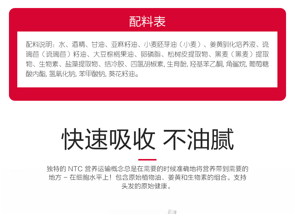 ¹生物素有助于维持正常头发。方便使用,易于吸收,不油腻。