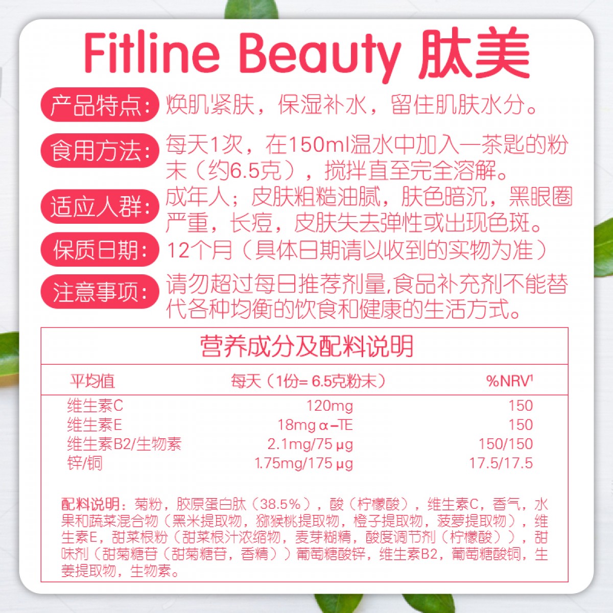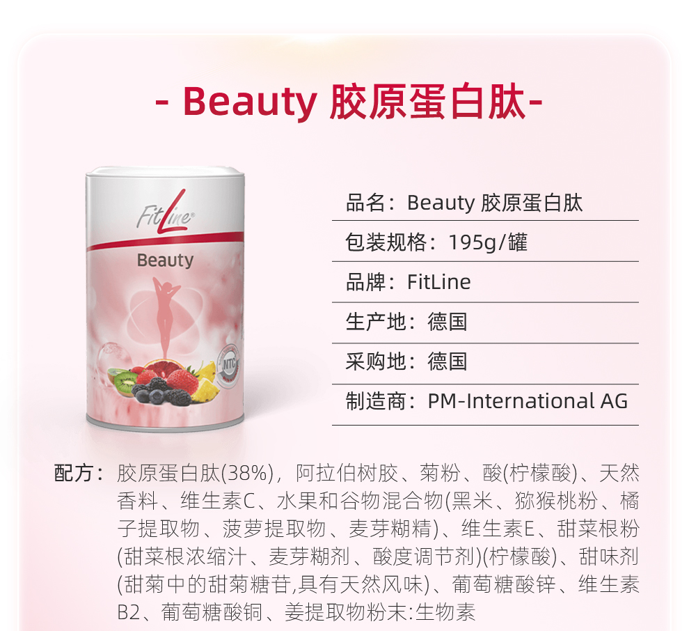 商品名称:FitLine德国进口PM菲莱胶原蛋白肽美粉果味饮料熬夜肌肤补水皮肤淡班嫩白 【焕肌紧肤肽美粉】1罐 195g