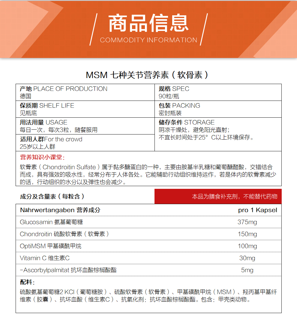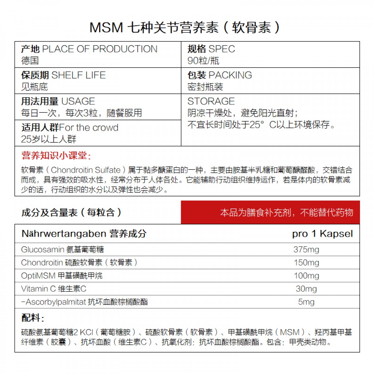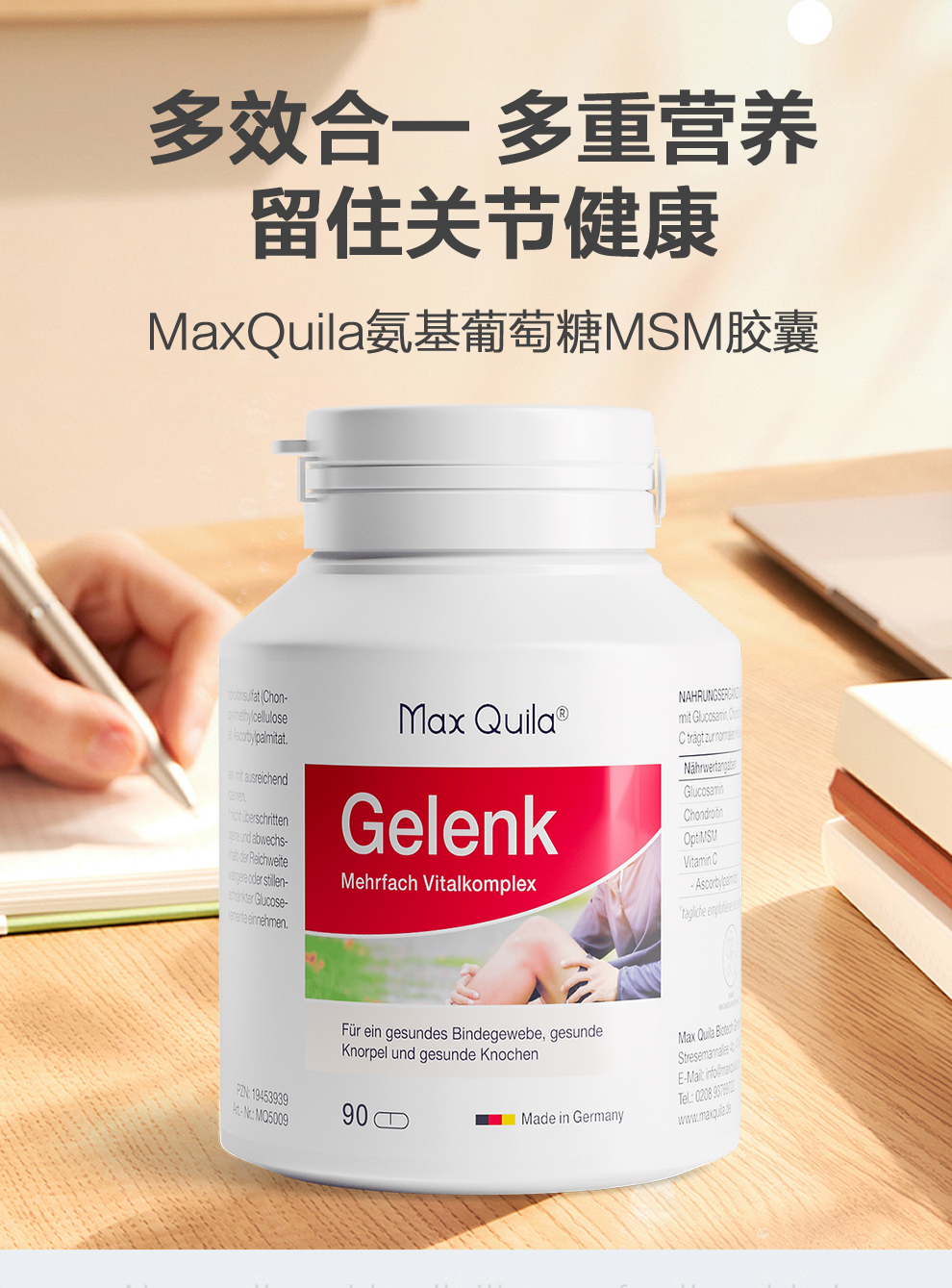 商品名称:Max Quila 德国进口氨糖软骨素含MSM增加骨密度硫酸氨基葡萄糖成人中老年 复合关节灵,含专利MSM