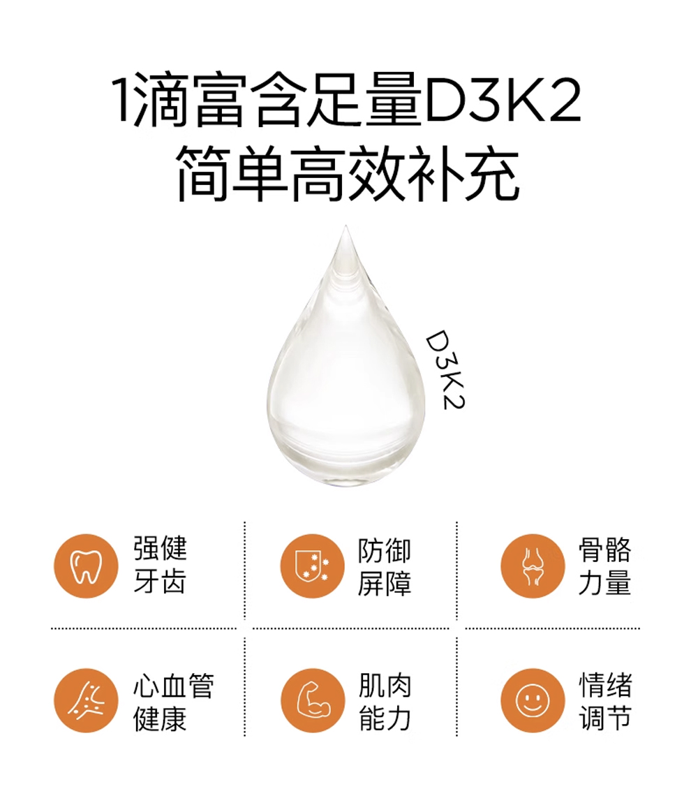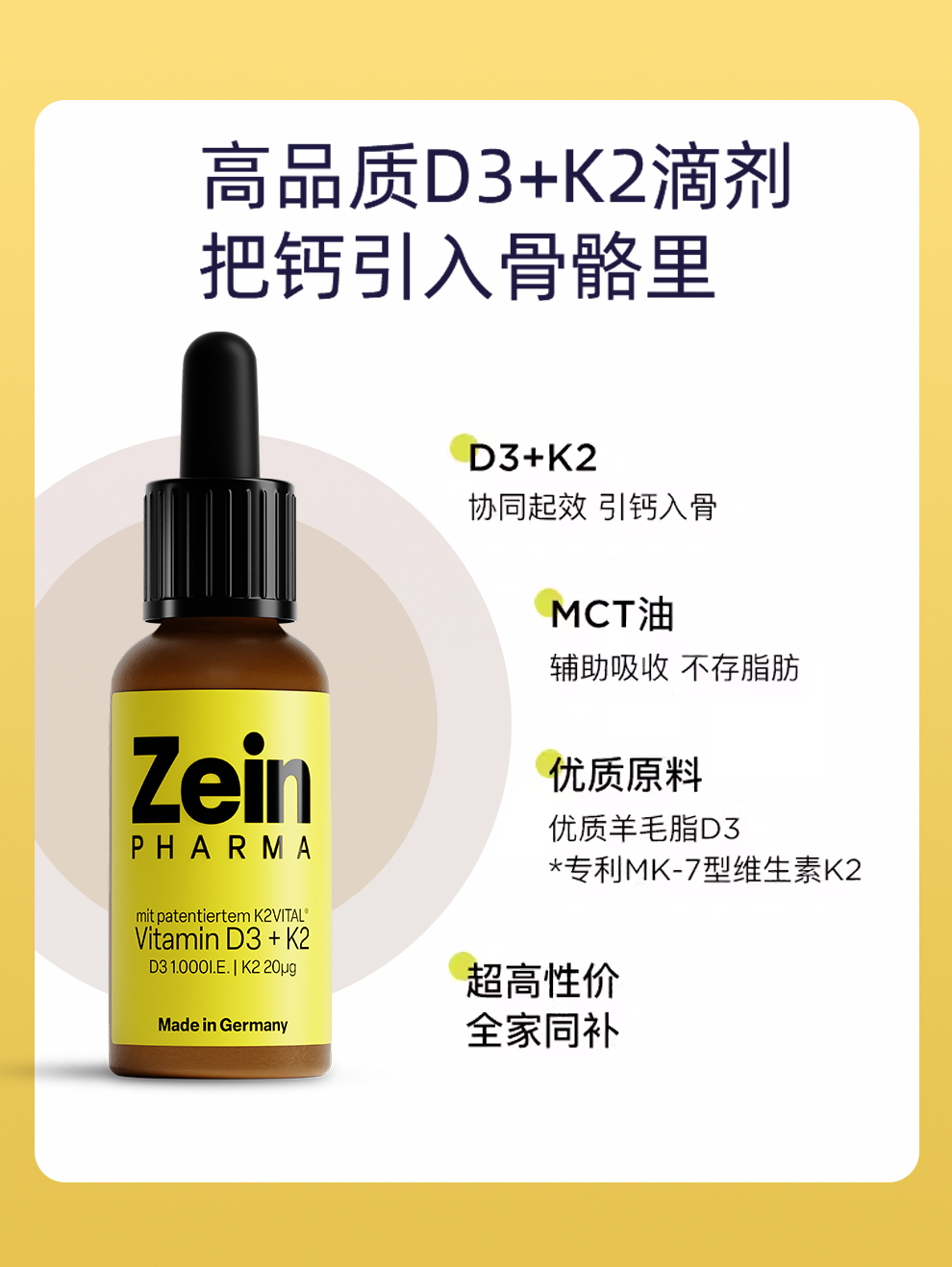 商品名称:德国进口zeinpharma彩恩维生素D3+K2强健康骨骼发育儿童成人孕妇中老年补钙滴剂 引钙入骨