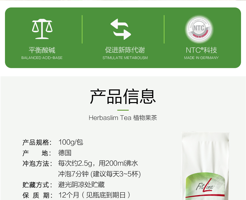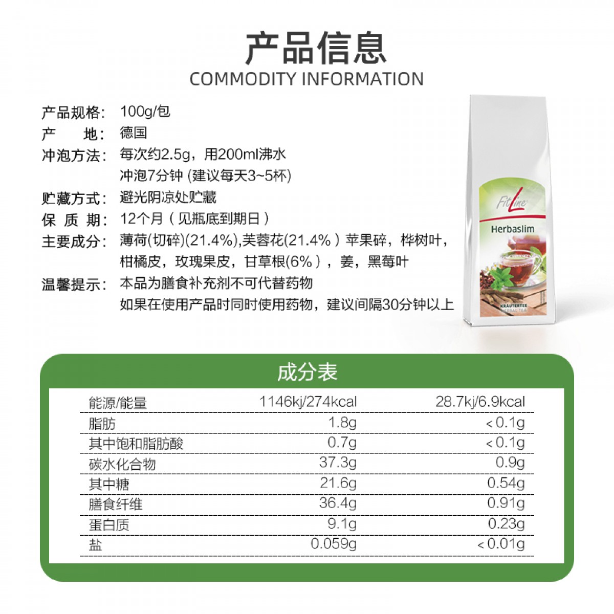 商品名称:FitLine德国进口菲莱果蔬排毒饮料助肝脏新陈代谢pm细胞营养素膳食纤维素 草本茶 清肠瘦身100g(14天量)